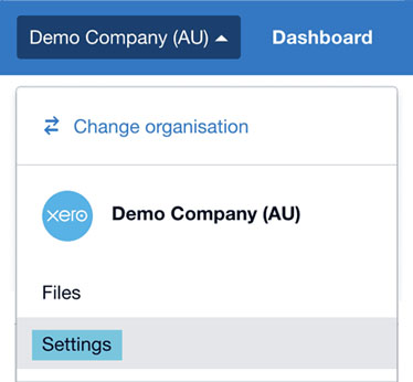 Step 2: Click on your organisation’s name and then select Settings in the dropdown menu.